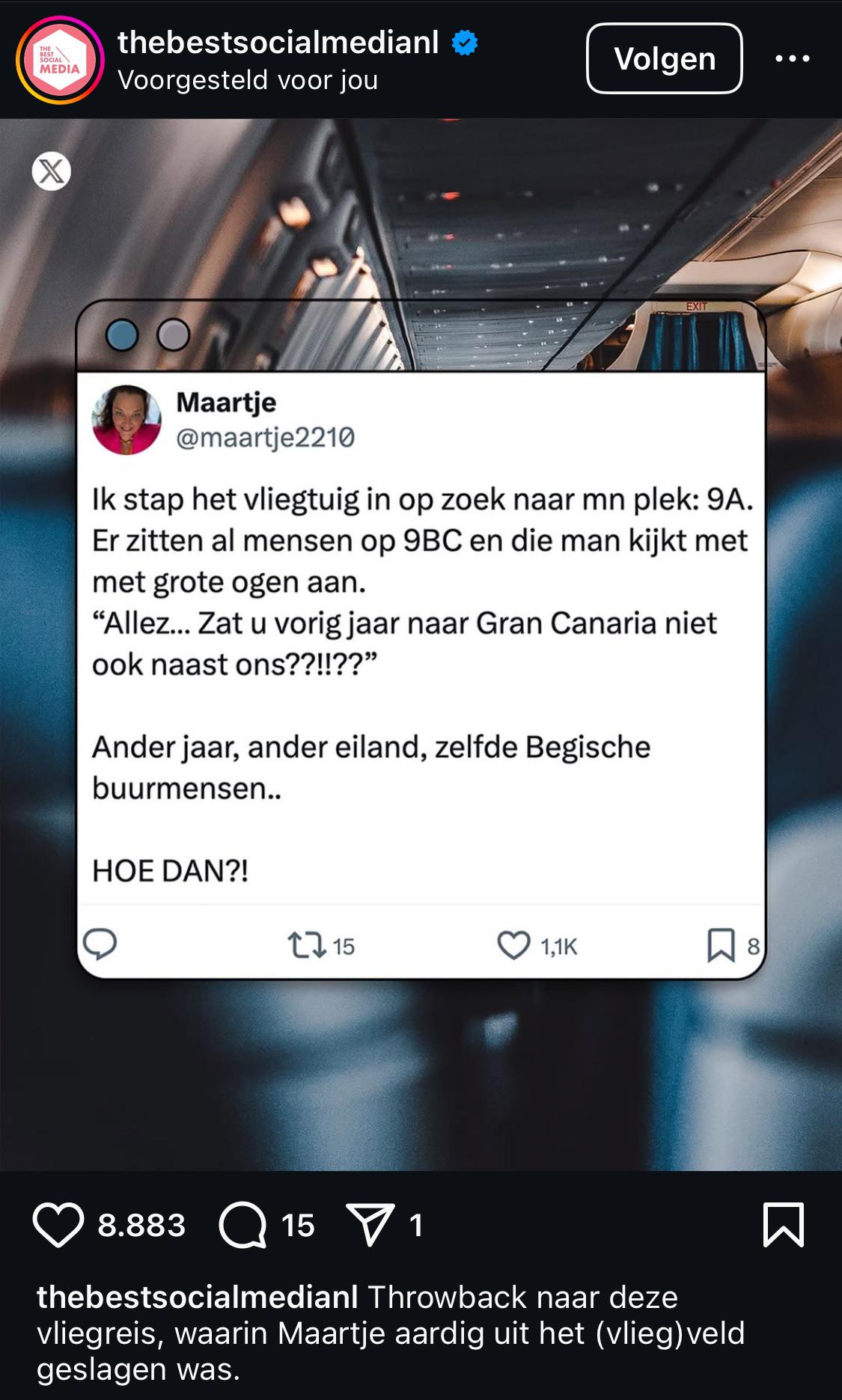 1. Wij deelden onlangs een post over Maartjes absurde vliegreis op Instagram, en die zette een Reddit-gebruiker aan het denken.