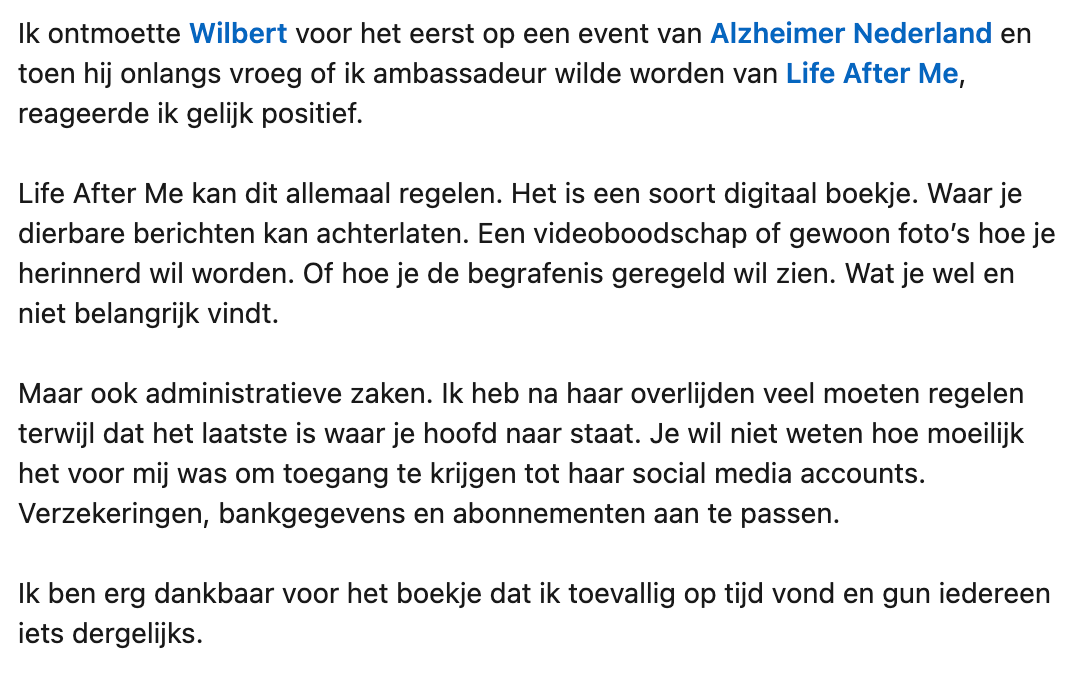 3. En aangezien Ton iedereen zo’n dierbaar boekje gunt, besluit hij ambassadeur te worden van Life After Me.