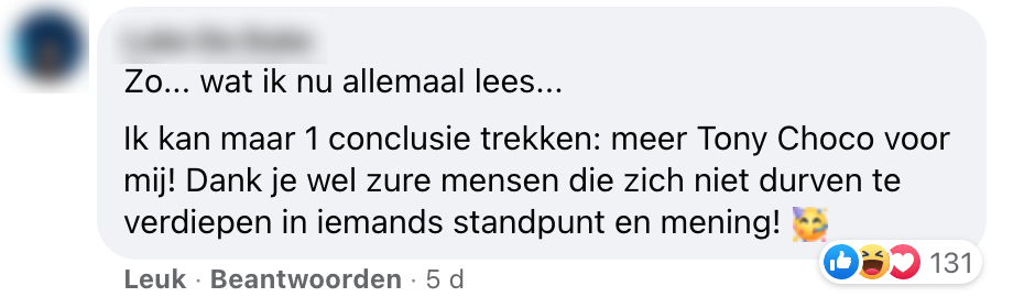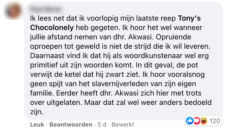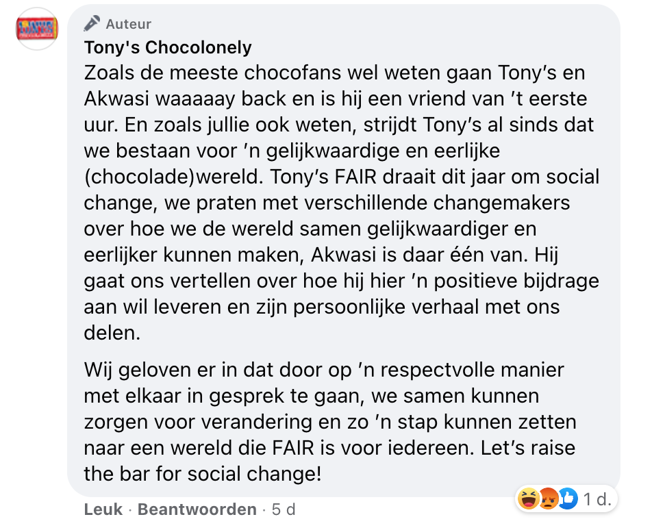 adformatie akwasi facebook reacties tony chocolonely