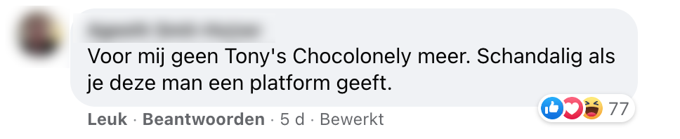 Tony’s Chocolonely deinst niet terug voor boze Facebookers om Akwasi-post
