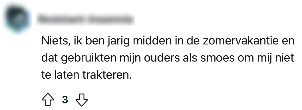 Als volwassenen zeggen we maar al te graag dat we écht niets om onze verjaardag geven, terwijl we elk jaar opnieuw stiekem een beetje teleurgesteld zijn dat we niet door een gillende menigte worden verrast op onze speciale dag. Vroeger ging het er wel een stuk leuker aan toe en keek je met de hele klas uit naar de verjaardag van die ene klasgenoot die altijd zo uitpakte met de traktaties. Maar natuurlijk was niets zo leuk als zélf trakteren. Een Reddit-gebruiker was benieuwd naar deze oude traktaties en werd getrakteerd op heel veel leuke antwoorden.