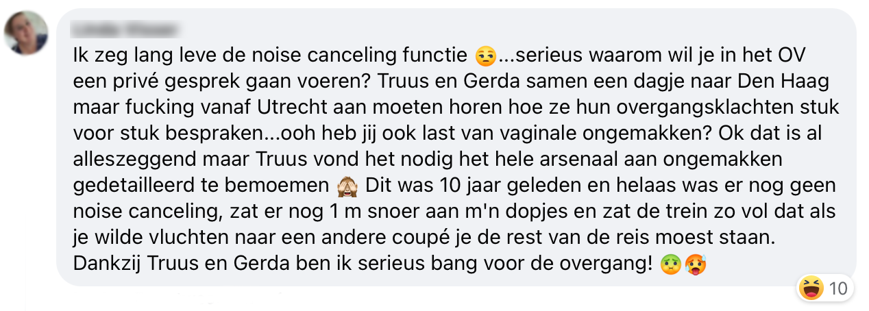 Sommigen vinden het heerlijk om in de trein te zitten. Even een moment voor jezelf waarin je kan genieten van het vlakke Nederlandse landschap. Totdat je rust bruut wordt verstoord door iemand die het nodig vindt om z’n privé-zaken zo hupsakee op dat kleine treintafeltje te leggen. Deze gesprekken zijn ook eigenlijk niet voor jouw oren bedoeld, maar voor diegene waar ze via de telefoon keihard tegen aan het praten zijn.