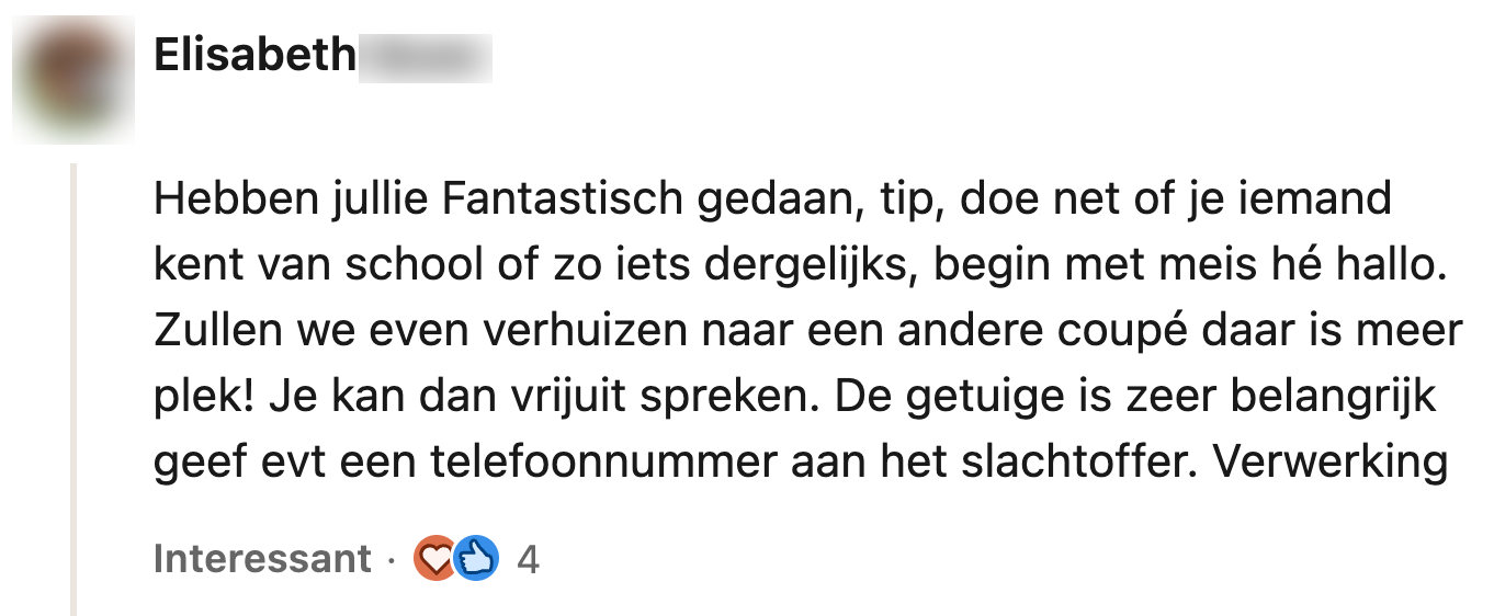 7. Mocht zo’n situatie in de trein zich nogmaals voordoen, dan heeft Elisabeth meer handige tips.