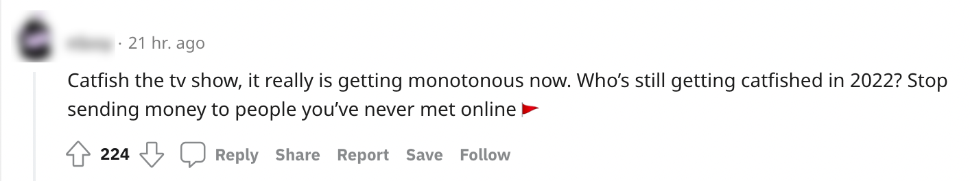 8. Hoewel mensen ook in 2022 nog altijd gecatfishd worden, snapt deze kijker niet waarom daar tegenwoordig nog steeds een heel tv-programma over gemaakt hoeft te worden.
