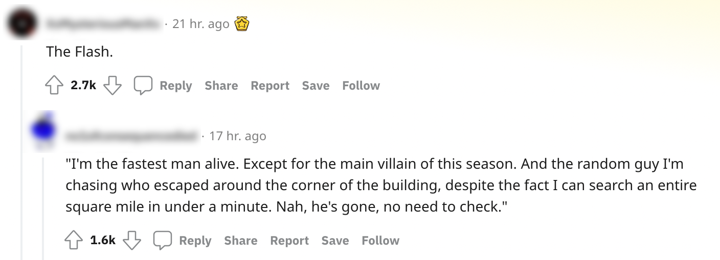 2. Deze serie heeft een klein probleem: The Flash is de snelste persoon ever-ooit, maar er moet toch altijd weer een sneller personage verzonnen worden om het spannend te houden.