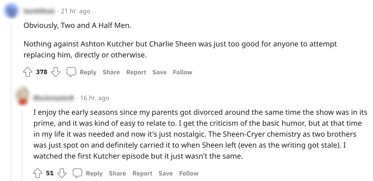 6. De makers van Two and A Half Man ontsloegen de onhandelbare hoofdrolspeler Charlie Sheen. Vaste kijkers vonden achteraf dat de serie toen maar beter helemaal had kunnen stoppen.