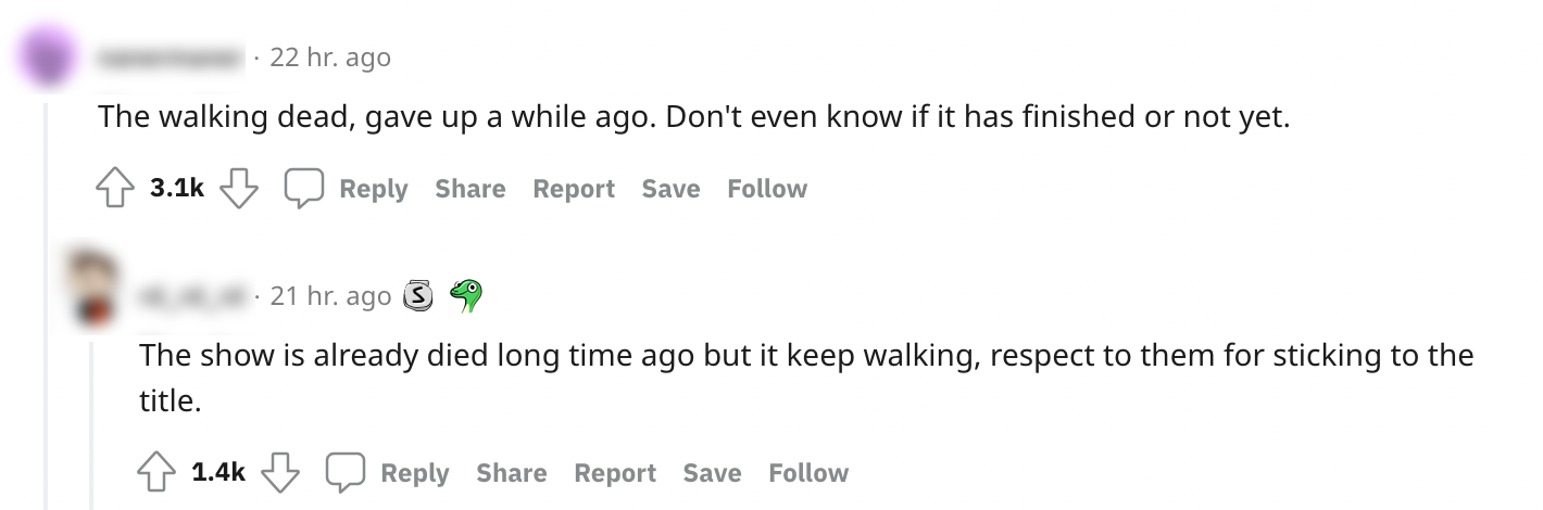 1. Er zit al heel lange tijd geen leven in The Walking Dead. Dat ze toch stug tegen de muur aan blijven lopen kunnen ‘fans’ wel waarderen, gezien de titel van de show.