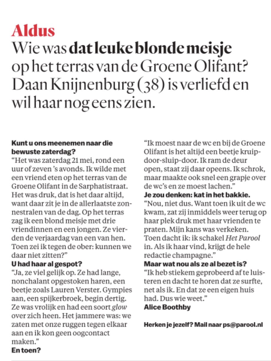 Als je iemand tegenkomt die je interessant vindt, is het soms best lastig om met diegene in contact te leggen. Of het nu komt doordat deze persoon in een flits voorbij kwam, of omdat je gewoon niet op diegene af durfde te stappen. Journalist Rutger de Quay deelt een bericht van een man die een oproep in het Parool doet om zo een vrouw te vinden die hij hier ontmoeten op het terras. Op Twitter ontstaat enorme commotie om dit bericht.