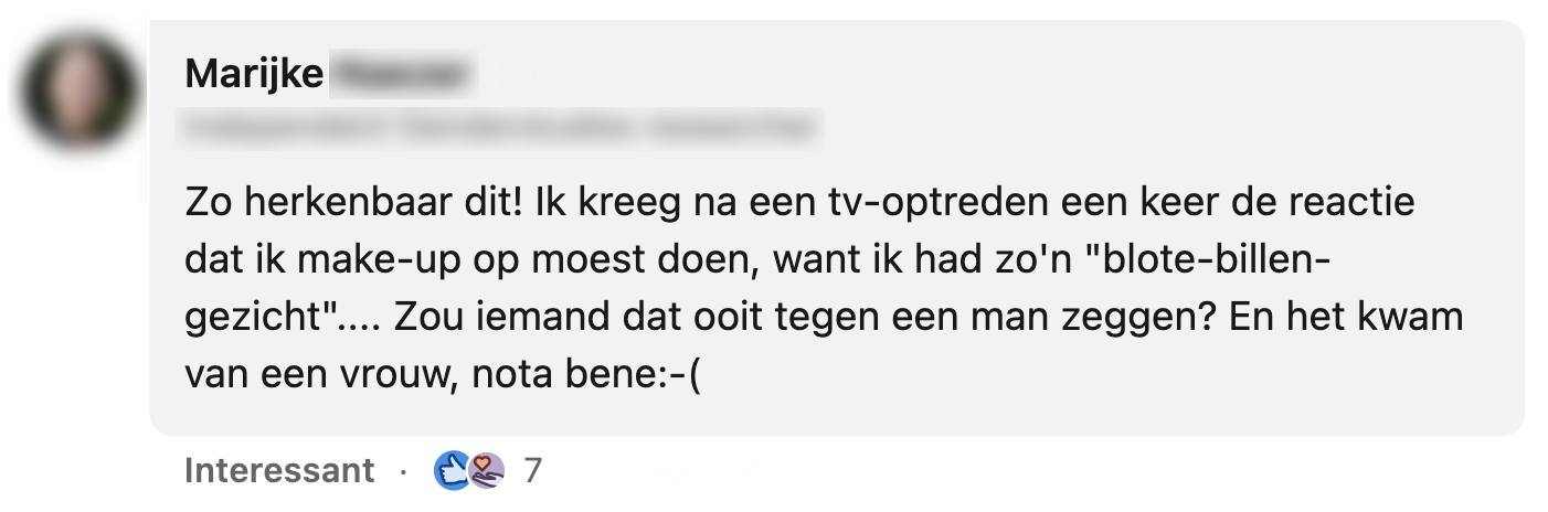 Wanneer Chantal een presentatiecursus bijwoont, krijgt ze een hoop feedback. Niet op haar stemgebruik of haar verhaal, maar op haar uiterlijk. Hoewel deze opmerkingen niet goed zijn voor haar zelfvertrouwen, is ze er totaal niet verbaasd over. Volgens haar is het namelijk één van de vele voorbeelden van de stigmatiserende vrouwenstempel. Chantal deelt haar frustratie hierover op LinkedIn en ontvangt een hoop steun.