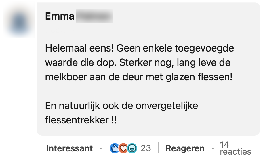 Er is al flink wat discussie geweest over doppen op flessen, vooral over het feit dat ze tegenwoordig vastzitten. Zit je net met een intense kater en flink veel dorst in de trein, klaar om een grote slok cola naar binnen te gooien, zit die klere dop weer in de weg. Plots is je witte shirt helemaal naar de getver en je buurman over de rooie omdat hij een halve liter koolzuur in zijn ogen heeft gekregen. Niet fijn. Ook de dop op het melkpak is geen favoriet. Roy doet hier een uitspraak over op LinkedIn en opent hiermee een hevige discussie.