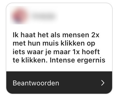 Hester deelde op Twitter één van haar grootste ergernissen. Dit liep uit tot een enorm afwijkingen-festijn. We konden zo genieten van alle reacties dat we haar tweet hebben gedeeld op onze Instagram story. Jullie reacties zijn om kippenvel van te krijgen