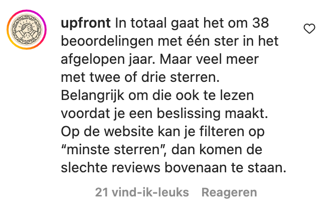 6. Juist door deze ‘negatieve’ reviews te delen, gaat het imago van Upfront er positief op vooruit.