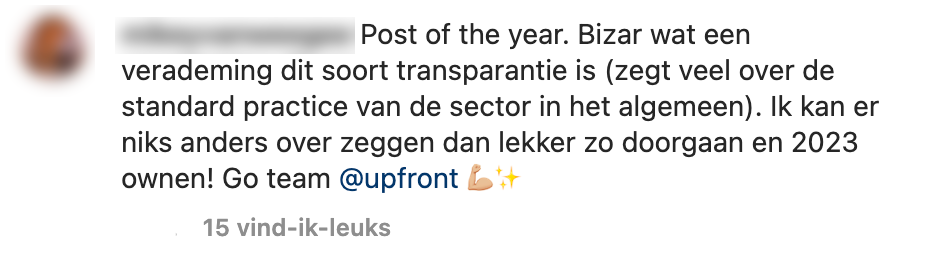 5. Veel lof en respect voor Upfront in de comments.