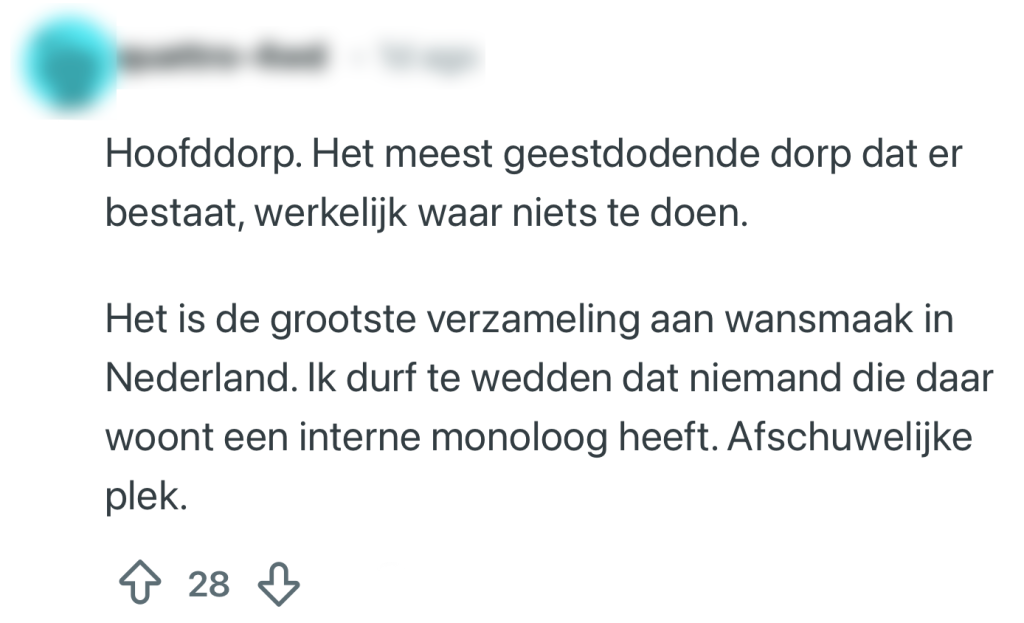 Je hebt vast een plek in Nederland waar je nog niet eens begraven wil worden. Of het nou komt door de mensen, de ligging of gewoon de reputatie die eraan kleeft, sommige plaatsen hebben het zwaar te verduren in gesprekken en online lijstjes. Van ‘daar gooien ze pannen bami uit het raam’ tot ‘je mag hier op zondag niet eens tv kijken’: de vooroordelen vliegen je om de oren. Een Reddit-gebruiker is benieuwd naar de plekken waar Nederlanders voor geen goud willen wonen, en gooit effe een balletje op.