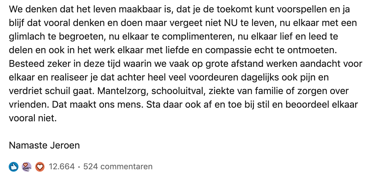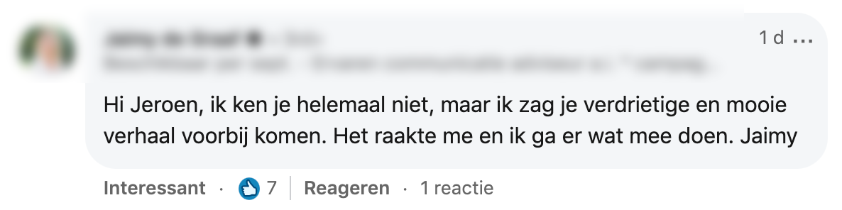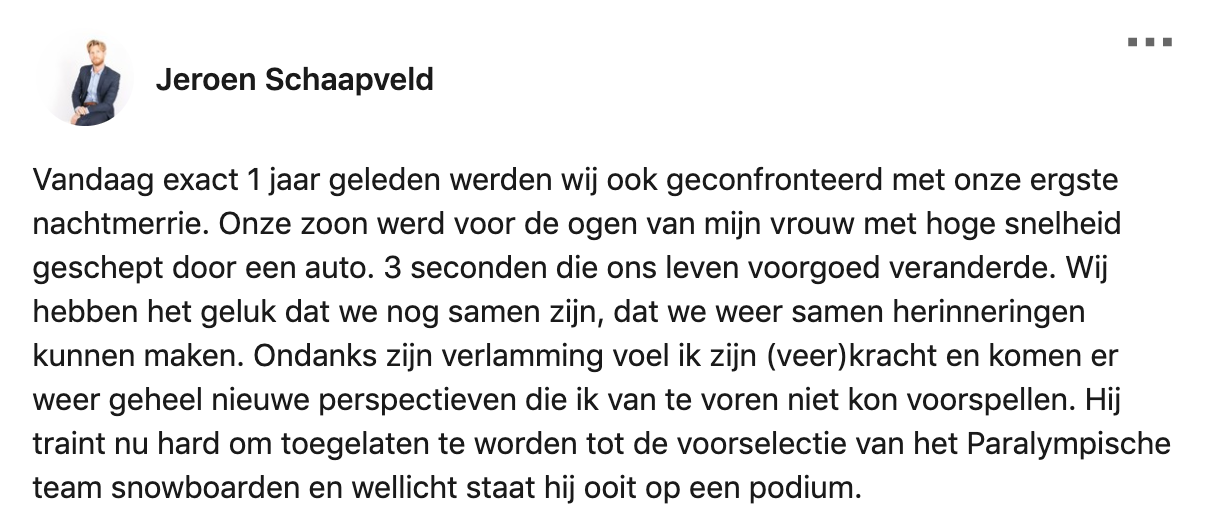 1. Exact één jaar na het ongeluk van zijn zoon deelt Jeroen deze post op LinkedIn.