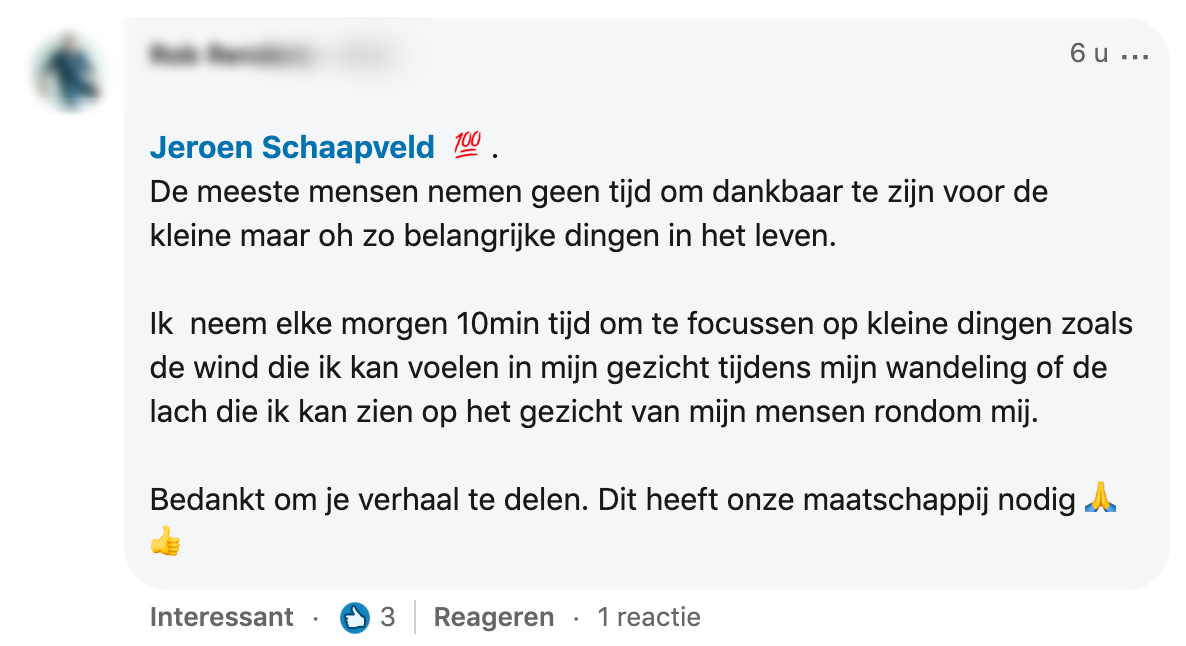 Toen de 16-jarige zoon van Jeroen geschept werd door een auto, veranderde dit zijn leven voorgoed. Hij overleefde het, maar raakte verlamd. Ondanks dat dit ongeluk verschrikkelijk was, bracht het Jeroen en zijn gezin tot nieuwe inzichten. Hij deelt zijn indrukwekkende verhaal op LinkedIn.