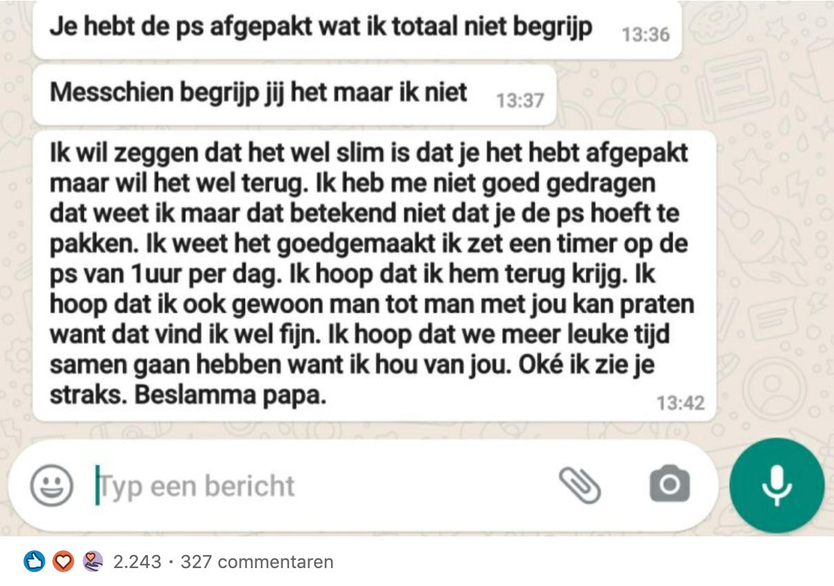 1. Azzedine Karrat deelde op LinkedIn een Whatsapp gesprek met zijn zoon, nadat hij zijn PlayStation had afgepakt.
