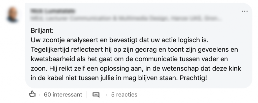3. Het gesprek wordt erg gewaardeerd op LinkedIn.