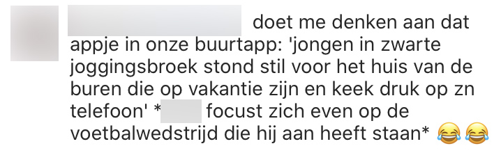 De BuurtApp is en blijft een oneindige bron van vermaak. Niet alleen door de grappen en grollen van trollen, maar zeker ook om de buurmensch met een talent voor onnodige paniekzaaierij.