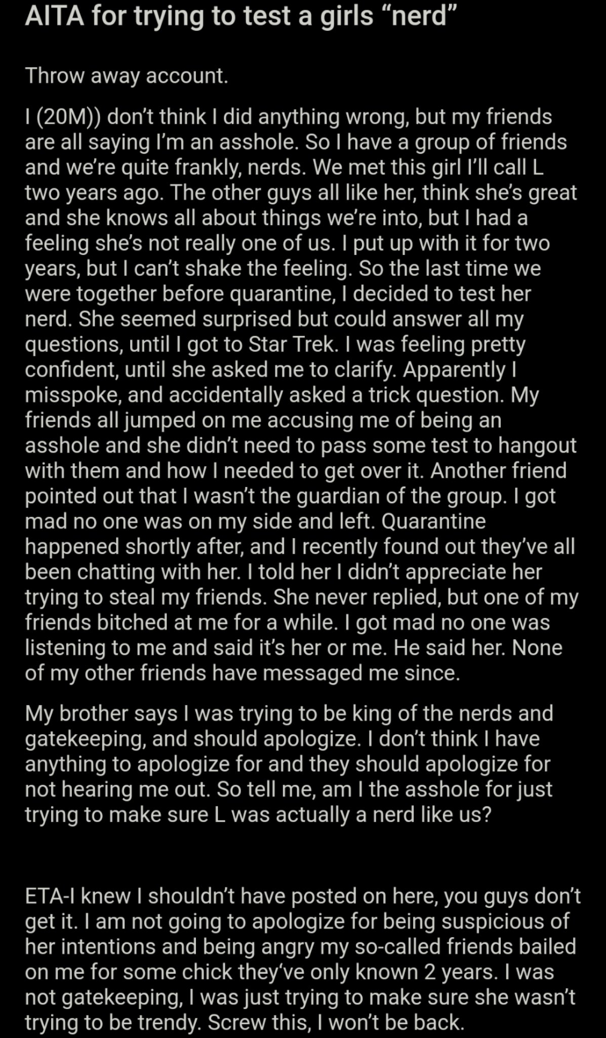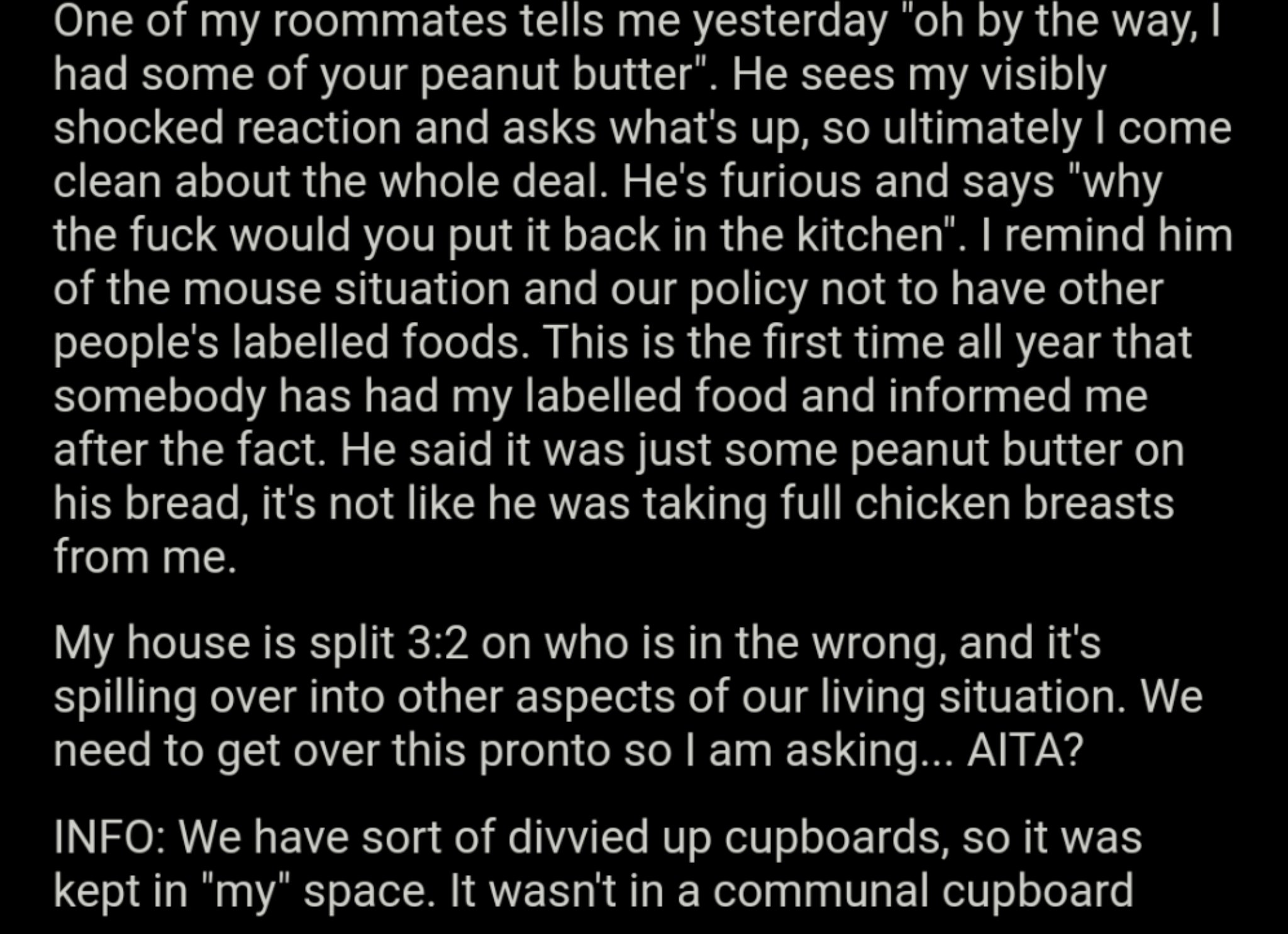 Zo nu en dan lees je iets waarvan je zou hopen dat het niet waar is. Er is een subreddit waar mensen acties delen waarmee ze mogelijk als asshole bestempeld zullen worden. De anekdotes op deze pagina gaan van kwaad tot erger. Het Twitteraccount Am I the Asshole verzamelt de meest opvallende berichten van de subreddit.