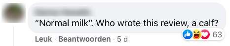 5. Het café deelde het tafereel rondom de review op Facebook en daar stroomden de reacties binnen. Want ook hier krijgt de klant nog even de volle laag over de definitie van ‘normale melk’.