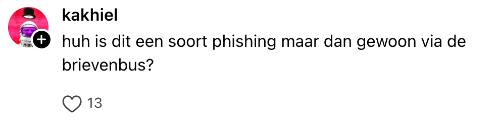 4. Al verwacht je zulke oplichting eerder via e-mail dan met een papieren brief.