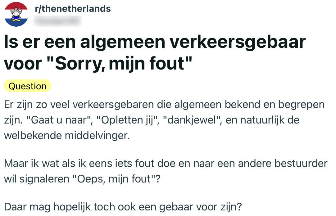 1. Deze Reddit-gebruiker weet dat hij een brokkenpiloot is en wil weten hoe hij hiervoor zijn excuses aan kan bieden in het verkeer.