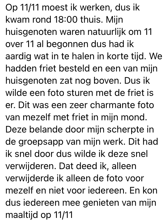12. En tot slot kan je ook een verkeerd appje vanuit de werkgroep iets te serieus nemen en het – zónder check – klakkeloos doorsturen naar al je kennissen.