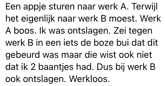 Het overkomt de beste: een appje naar de verkeerde persoon of groep sturen. Nou kan dat alleen al rete ongemakkelijk zijn, maar laat staan dat al je collega’s de ontvangers zijn. En dat dat appje dan ook nog eens content bevat waarvan je werkgevers de laatste mensen zijn die ze zouden mogen zien. Afijn, geniet niet te veel van deze blunders, want karma kan een vervelende zijn.