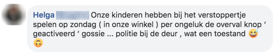 Ik heb ooit bij Trekpleister gewerkt en per ongeluk op de overval-knop geduwd. Ik had opeens een paar agenten aan mijn kassa.