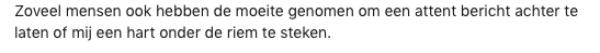 2. En hoe leuk hij het vond dat mensen zo meeleven.