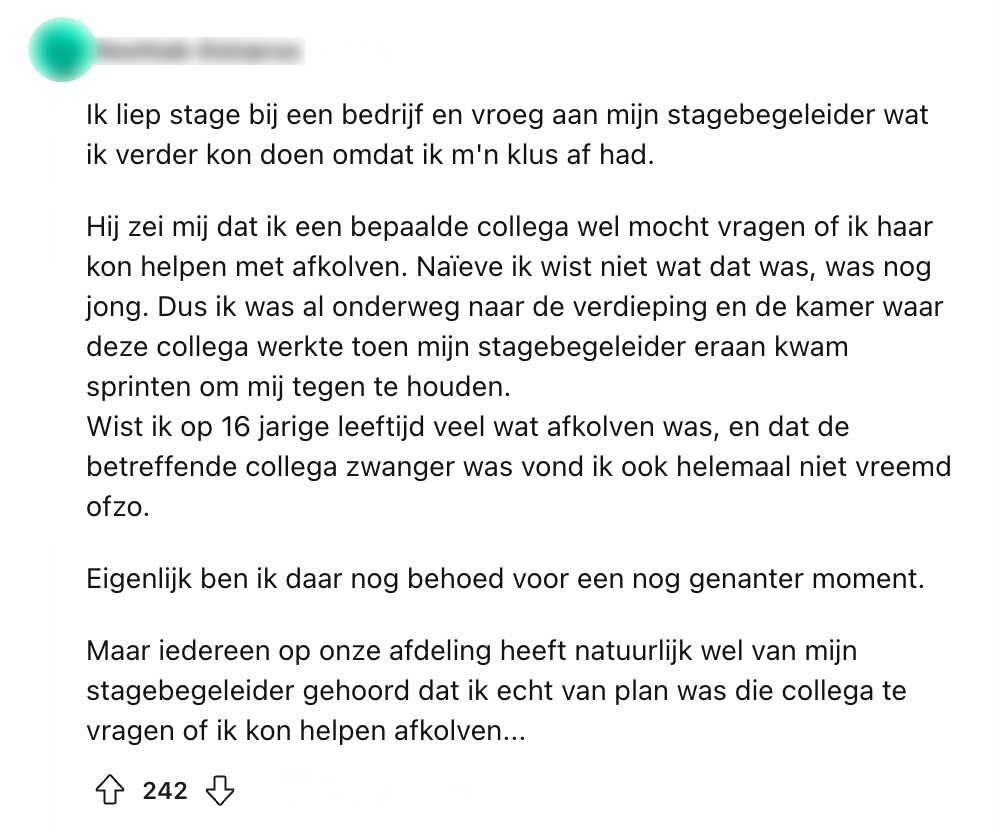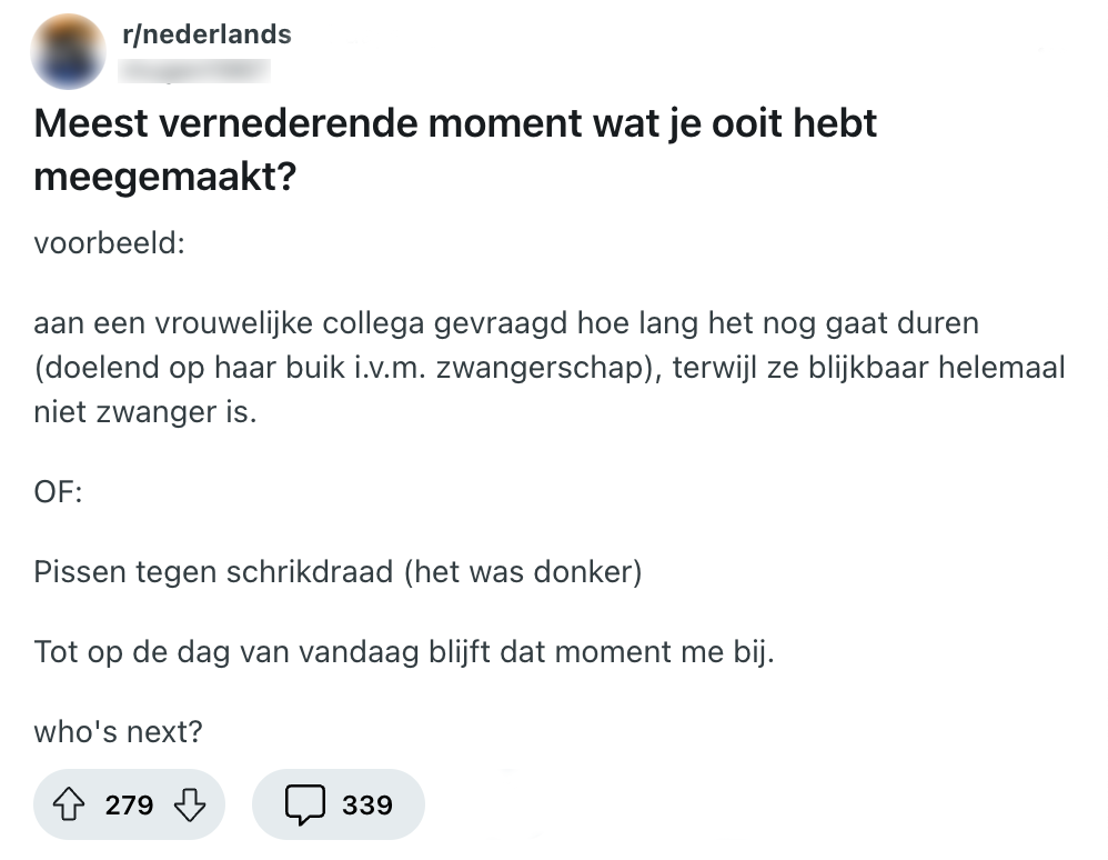 1. Deze Reddit-gebruiker vraagt andere Nederlanders naar vernederende momenten en trapt af met twee mooie voorbeelden.
