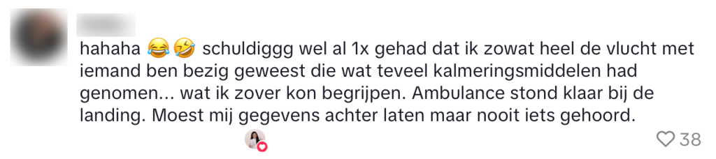 Met het vliegtuig reizen is voor sommige passagiers retespannend. Voldoet je koffertje wel aan de afmetingen van de vliegmaatschappij, zit er een krijsende huilstruik achter je en werkt de linker motor van het vliegtuig wel naar behoren? Soms kun je er beter een paar kalmeringspillen ingooien. Maar er is één angst die waarschijnlijk iedere verpleegkundige heeft tijdens de vlucht, en dat is déze…