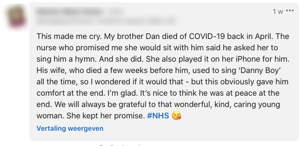 1. Op LinkedIn deelt Strati de video. Of het echt de laatste uren van de patient zijn is niet zeker. Maar het is hoe dan ook een mooi gebaar.