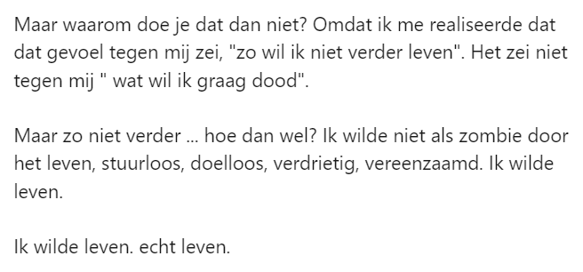 Dan kun je anoniem contact opnemen met Stichting 113 Zelfmoordpreventie via 0800-0113 (gratis) of chat op 113.nl.