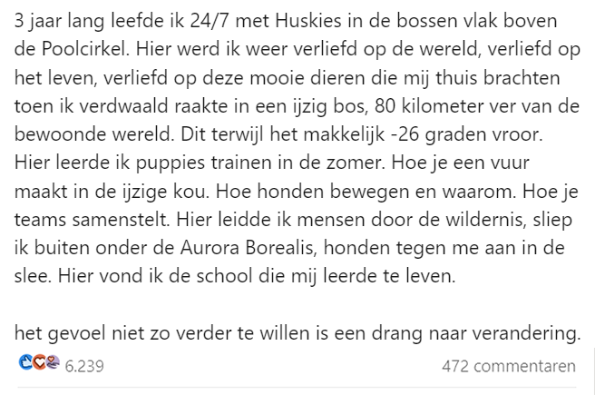 5. De verre reis heeft zijn leven gered. Hij heeft veel geleerd van zijn huskies, de bossen en de manier van overleven in het wild.