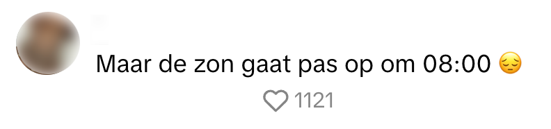 Dat ‘hot girl summer’ nu écht voorbij is, moge duidelijk zijn. Menig Nederlander ploetert weer veertig uur per week achter een laptopje, het wordt steeds een graadje kouder en de dagen worden korter. Slaafjes van de baas zien dan ook amper daglicht, omdat ze vertrekken en thuiskomen wanneer het donker is. Als er een video van influencer Jade Anna verschijnt waarin ze zegt dat het zeven uur ’s ochtends is, maar er een strakblauwe lucht te zien is, zetten Nederlanders daar binnen no time dikke vraagtekens bij.