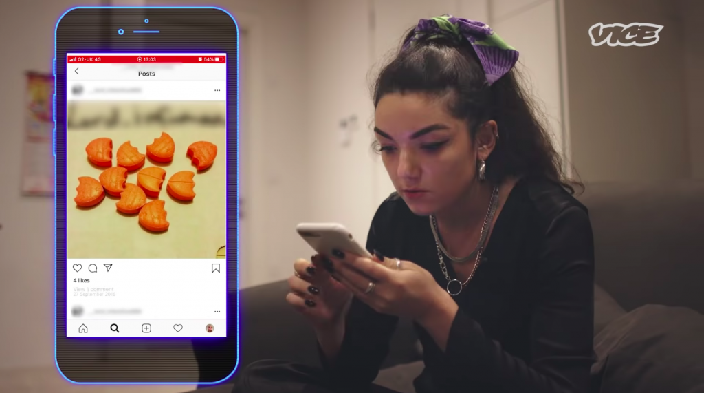 3. Dhondy maakte een profiel aan, vond door middel van hashtags een paar dealers en had binnen 5 minuten contact met een dealer die haar drugs aanbood.