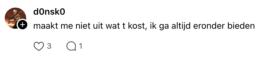 Nog niet uitgelezen? Klik dan door naar dit artikel over een Vinted-verkoper die per ongeluk een opvallend voorwerp in diens broekzak laat zitten. Of lees dit artikel over tien onbetaalbare Marktplaats-momenten waar je sowieso geen bod op uitbrengt.