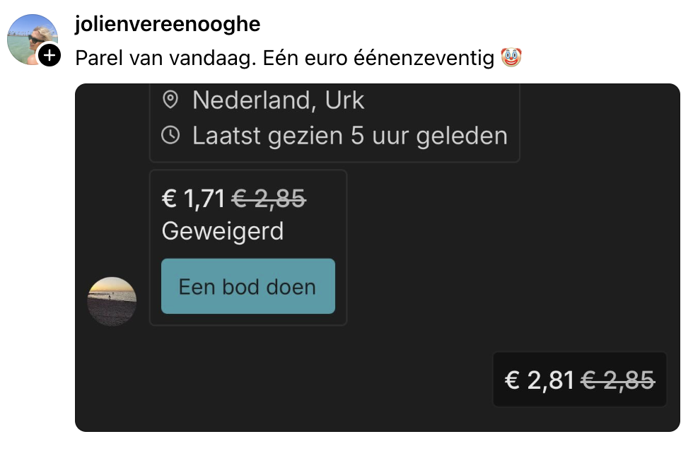 1. Vinted-gebruiker Charnele vindt ’t bod maar raar.