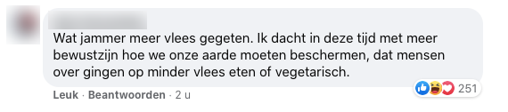 Mocht je denken dat er steeds meer mensen vegetariër zijn geworden, dan heb je dat toch een beetje mis. Want de vleesconsumptie is het afgelopen jaar met 0,5 kilo per persoon toegenomen. Hoewel meer mensen vleesvrije dagen op de planning hebben, eten ze buiten de deur wel karbonaadjes en hamburgers. In de comments onder het NOS-nieuwsbericht laten mensen weten tot welk front zij behoren. En het zal sommigen een worst wezen.