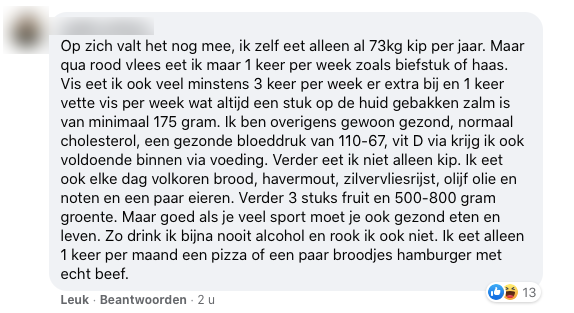 2. Het grootste gedeelte van de Facebookers deelt graag even hoeveel vlees zij tot zich nemen.