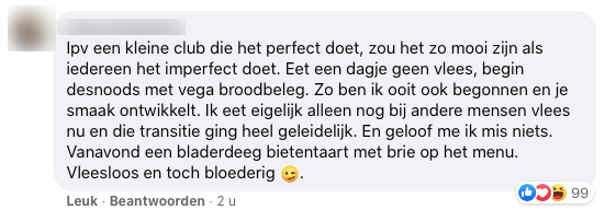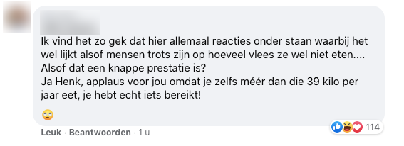 2. Het grootste gedeelte van de Facebookers deelt graag even hoeveel vlees zij tot zich nemen.
