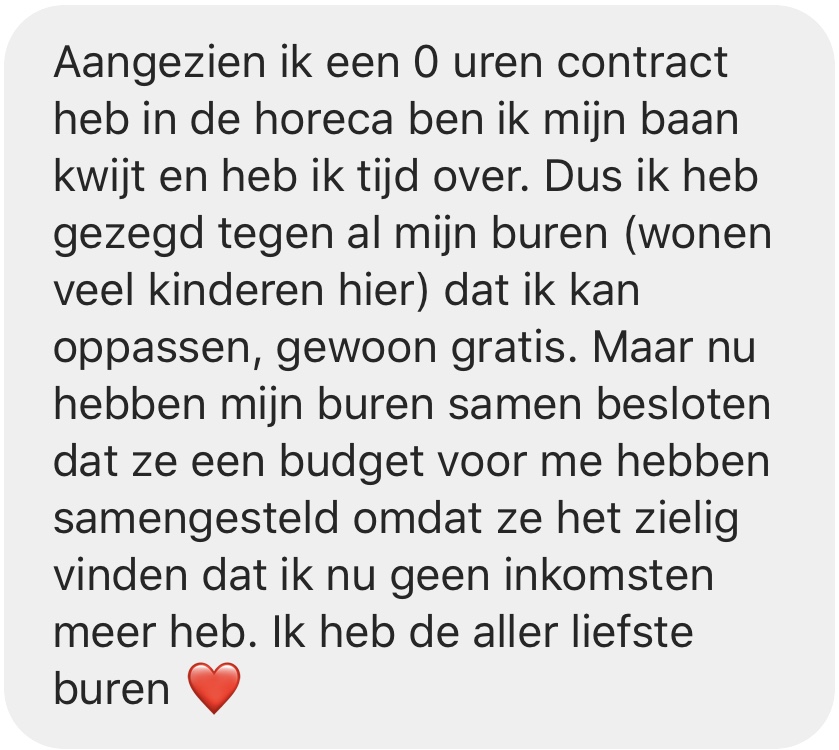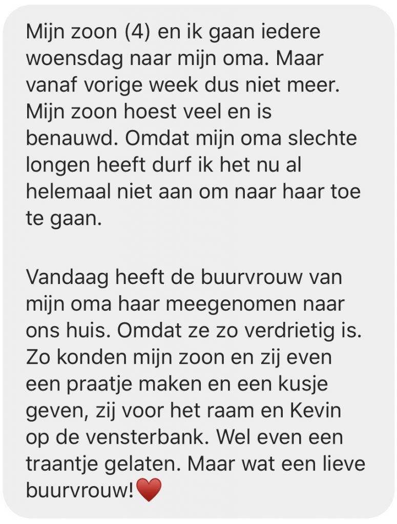 Deze hele periode waarin we met dit landje verkeren laat zien wie we zijn. Niet alleen doordat onze drang naar pleepapier voor altijd duidelijk is geworden, maar ook doordat we een partijtje lief zijn voor elkaar. Dat wisten we eigenlijk al, maar jullie corona-verhalen zijn eens te meer een fijne bevestiging.
