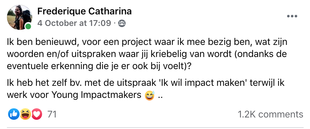 1. Kriebelig dus. Frederique deelt haar vraag in de Facebookgroep Amsterdam Durft Te Vragen.