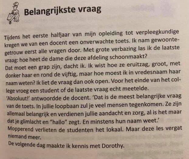 Heel mooi en dat geldt niet alleen in de zorg maar overal. Aandacht voor de ander zit juist in de kleine dingen. #geleerdvanmijnouders