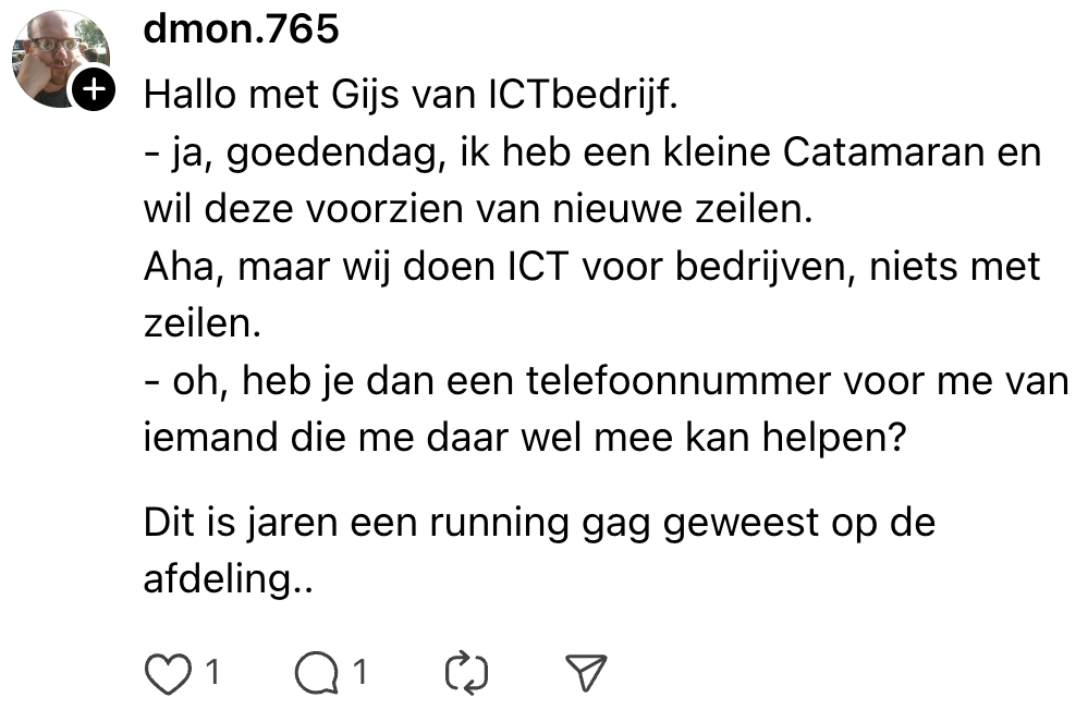 1. Gio vraagt zich af wat de gekste vraag is die een klant aan een medewerker heeft gesteld.