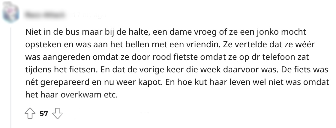 10. Uit dit gesprek in het ov blijkt dat blaffende honden dus ook kunnen bijten.