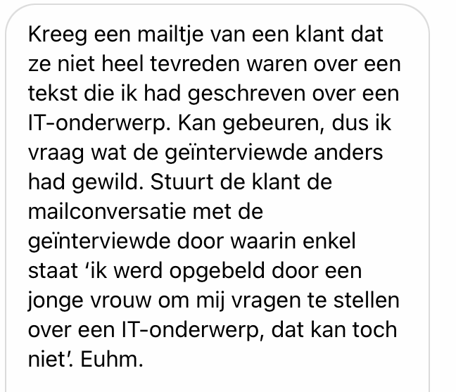 3. En dan al die halve liefdesverklaringen in jullie werk-mail.