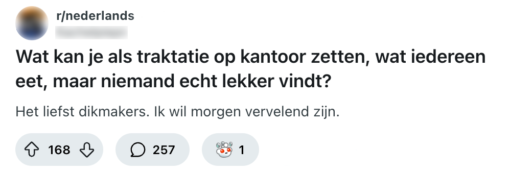 Op kantoor zijn er van die momenten dat je wel móét trakteren, bijvoorbeeld na een promotie of op je verjaardag. Hoewel het natuurlijk geweldig is als iemand anders een lekkernij meeneemt, is zelf trakteren toch een ander verhaal. Op sommige dagen heb je daar gewoon geen zin in. Een Reddit-gebruiker vraagt Nederlanders naar de meest vreselijke traktaties om je collega’s mee dwars te zitten en krijgt een overvloed aan reacties.